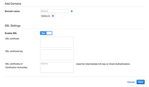 In this example I'll be adding an SSL certificate for the "kodius.com" domain.