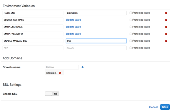 Instead we'll build a custom chef script to enable SSL while the application is being deployed. We will also add a cron job to automatically extend the certificate's validity meaning we'll never have to think twice about whether our certificate is gonna run out.
